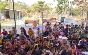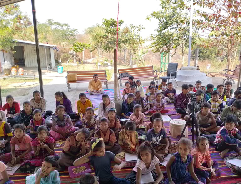 Trust has started Gurukul for under privileged and poor children’s. Currently 70 students are studying under this Gururkul scheme, trust has also started vocational courses like cloth making from traditional hathkargah machines for Gurukul students and nearby scheduled tribe peoples, and along with these many other handicraft techniques are being taught to them.